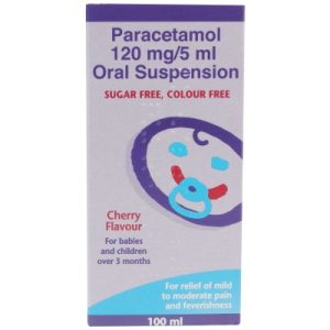 The paracetamol in CALPOL® Infant Sugar Free Colour Free 120mg/5ml Oral Suspension is used to relieve pain and or bring down fever (high temperature) in many conditions,including post-immunisation fever, teething, headache, cold and flu, toothache, earache, sore throat and other aches and pains.